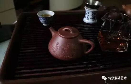 紫砂,可以质朴内敛。它的构造拥有自由和灵性,可以暖手温心,可以成全一种委托生命想象的大美。于是原本纠缠于繁杂琐事的,在品呷香茗、把玩砂壶中安静淡定。人生感怀寄寓其中,枕石醉陶已经足够,仕途宦海已经忘却。如果既能诗书立世,又能游戏人生,在一把紫砂壶上寻找入世与出世的平衡点,岂不妙哉!