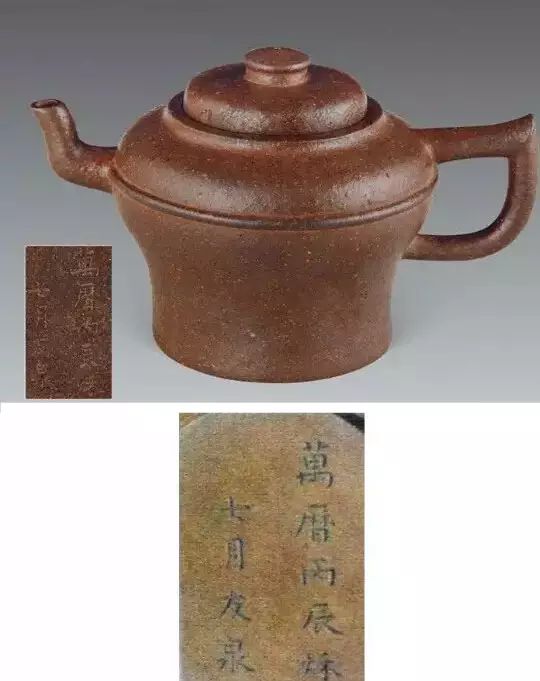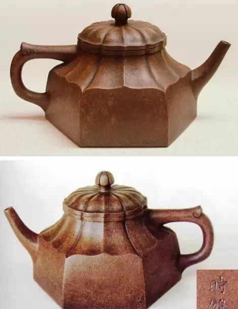 (明)时大彬 玉兰花六瓣壶 「时大彬制」刻款-「万暦丁酉春」1597年作 高:8厘米,阔:12.1厘米。