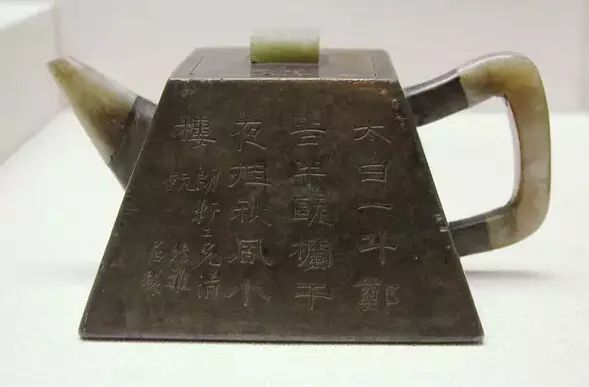 (清)杨彭年 包锡刻松铭方斗壶 「杨彭年制」印-「博雅居制」刻款-十九世纪初期 高:6.9厘米,阔:10厘米