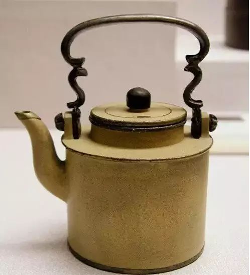 (清光绪)泰国附茶隔圆筒提梁壶(外销) 高10厘米,阔8.8厘米