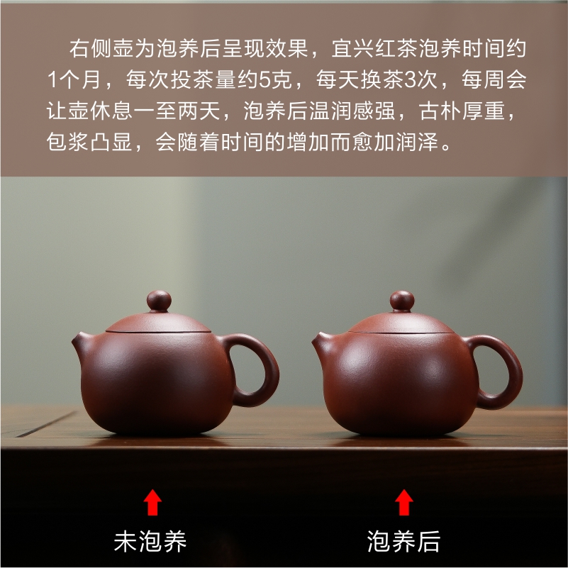 1、不要为养壶而喝茶,顺其自然,放平心态,3月或半年养出来都可以,心境平和才好。 2、茶壶是用来喝茶的,壶是为茶服务的,要根据茶来选壶,利茶的壶才是好壶。 3、开壶的时候一定要认真,要尽量把壶里一些小砂料、杂质、灰尘去掉,可以用牙刷清理下。 4、泥料不好的壶不等于一定就是加了化料了,有的壶可能是料里的砂不纯,或者陈腐时间不够或者烧制温度不够等原因。 5、喝完茶把壶内外认真的清净,擦干水迹,敞开壶盖,倒置阴干,每周让壶休息一两天,可以多准备几把壶轮着用,好让壶能干透了。 6、如果不是为了收藏,只是为了实用喝茶,全手工和半手工区别不大,半手工的性价比更高。